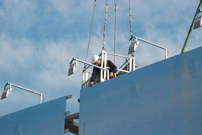 Anlieferung der Bauschild-Anlage, deren Aufbau und gegebenenfalls